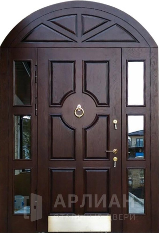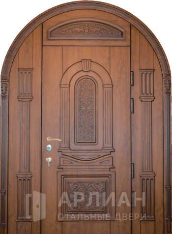 Входные арочные двери выбирают не только из любви к красивым фасадам. Арка помогает подчеркнуть архитектуру входной группы, аккуратно «собирает» высокий проем и делает его визуально легче. Поэтому металлические арочные двери чаще всего ставят в частные дома, но арочный формат встречается и в городской среде — например, когда нужен выразительный вход в подъезд или нестандартная входная квартирная дверь.