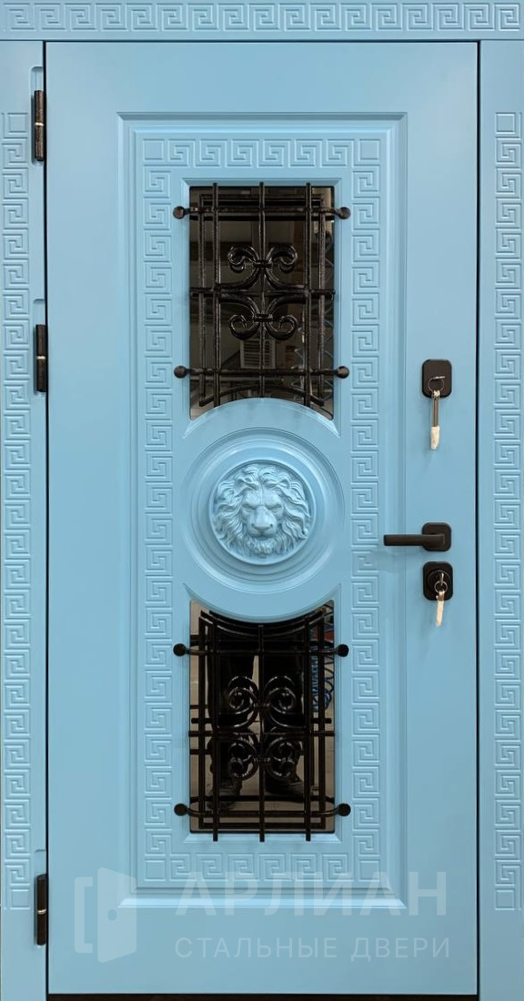 Двустворчатая входная дверь со стеклопакетом №18