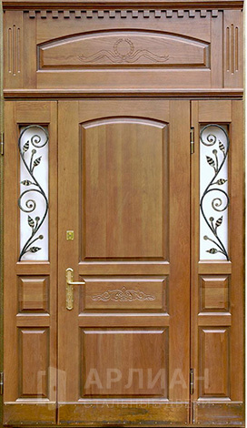 Входная парадная дверь с ковкой отделка натуральным деревом №79